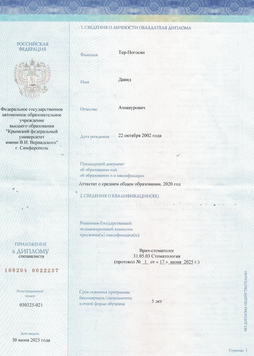 Эти слова отражают профессиональный подход Давида Азнавуровича - уверенный, системный и ориентированный на здоровье зубов в долгосрочной перспективе.