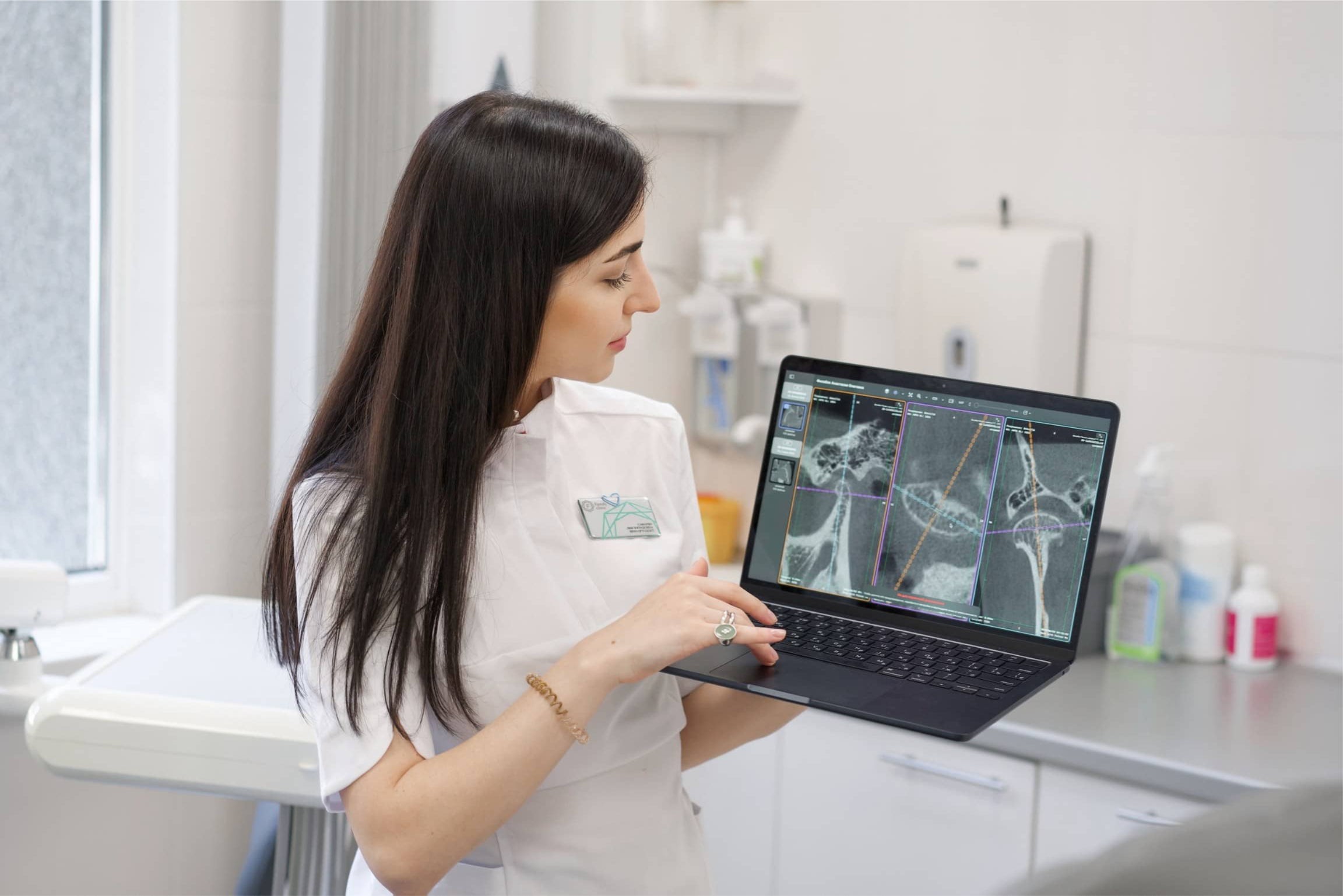 - Компьютерная томография (КТ) зубов в привычном смыкании, а также височно-нижнечелюстных суставов (ВНЧС) и телерентгенография (ТРГ).